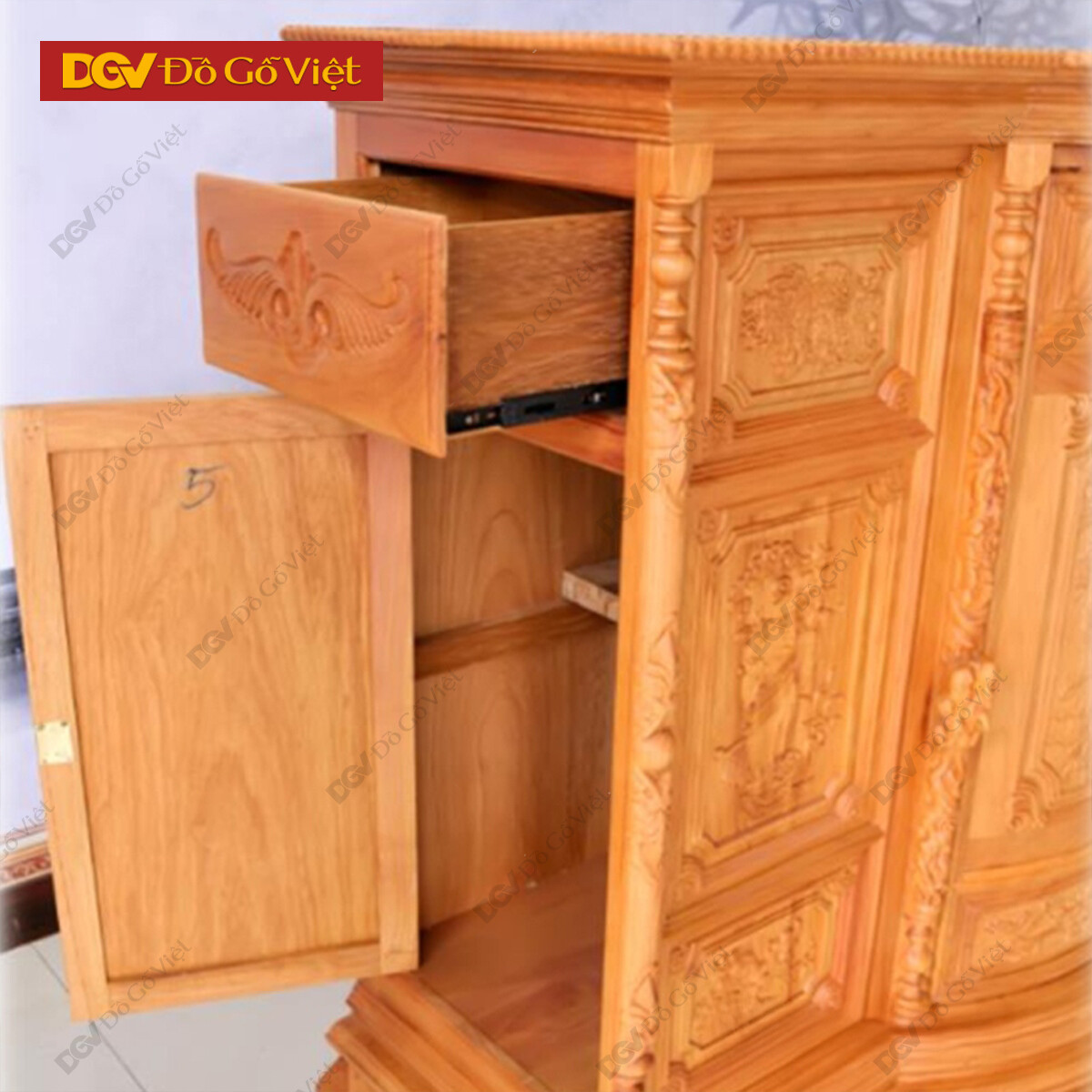 Tủ Thờ Gõ Đỏ Vuông Chạm Hoa Văn Đẹp Sang Trọng