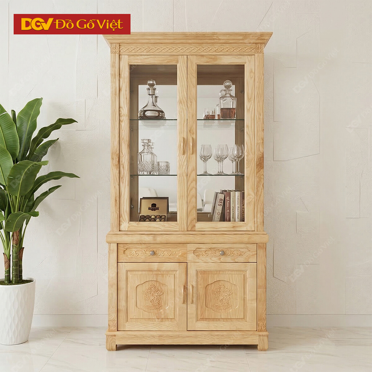 Tủ Trưng Rượu và Ly Nhỏ Gỗ Sồi Nga Đẹp Giá Rẻ