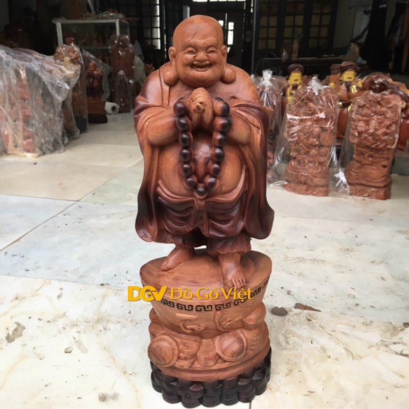 Tượng Để Bàn Gỗ Tự Nhiên Chạm Di Lặc Chúc Phúc Đẹp