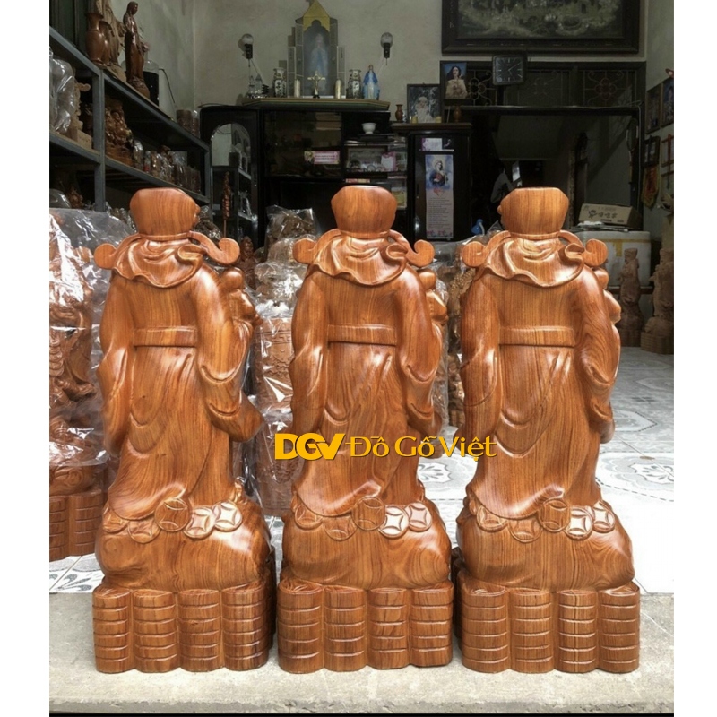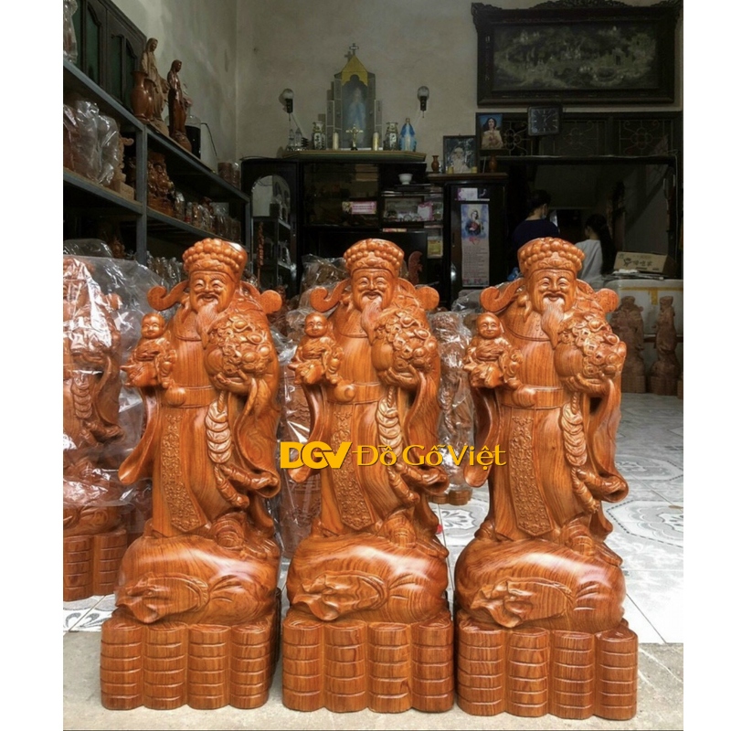 Tượng Gỗ 3 Ông Thần Tài Cầu Lộc Chạm Trổ Đẹp